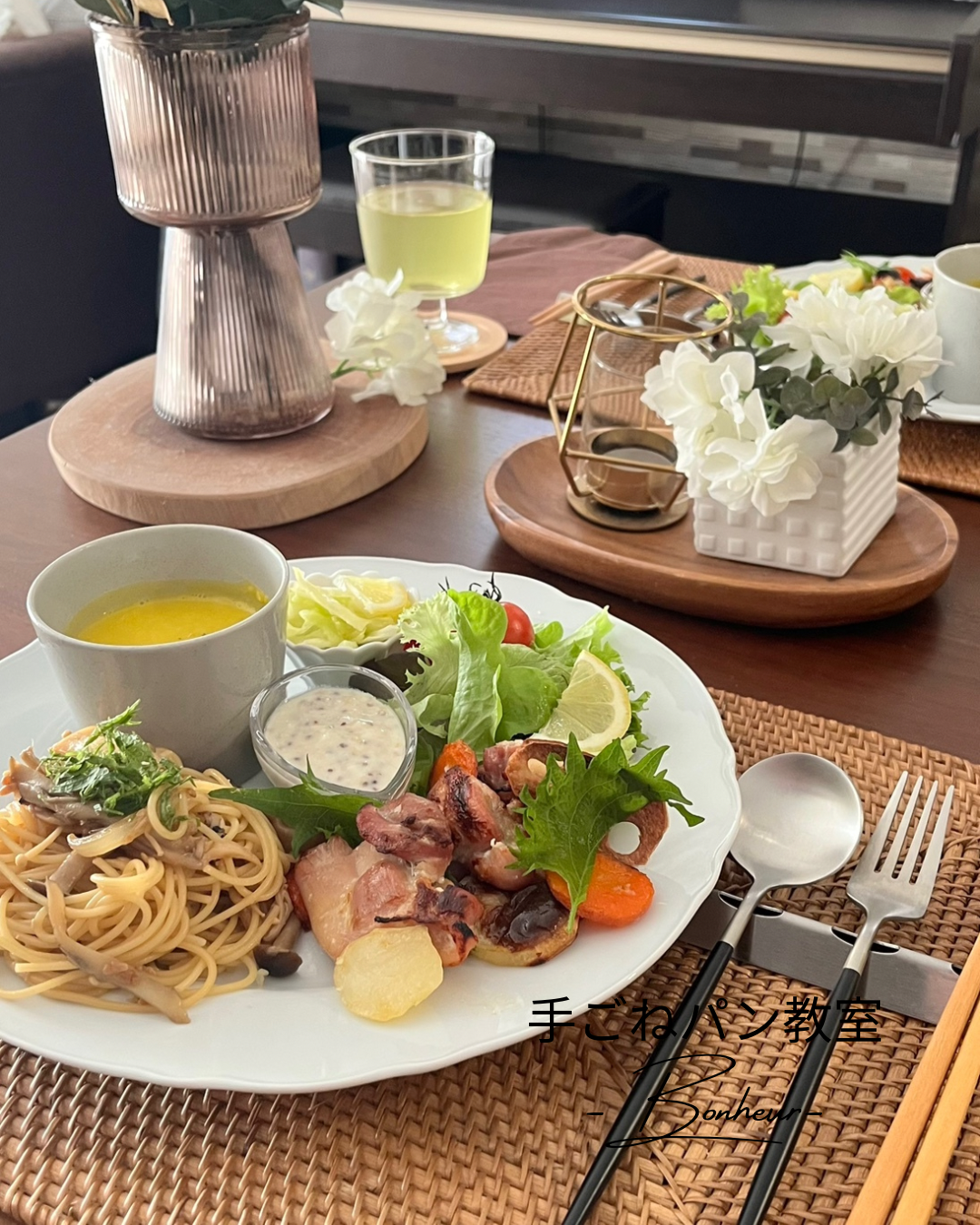 講師と一緒に作りながら4品を仕上げて、ランチとして召し上がっていただきます。(お持ち帰りの料理はございません)